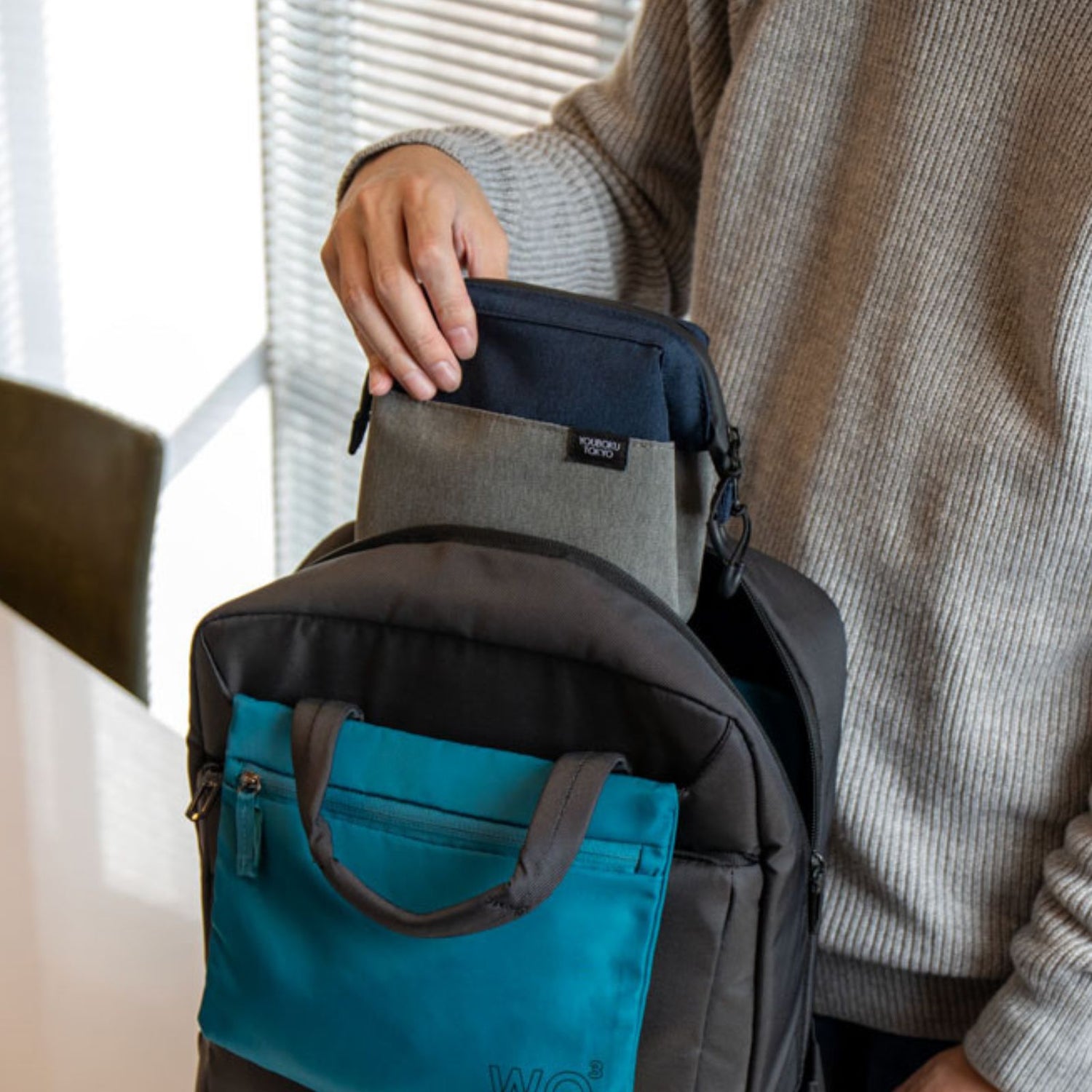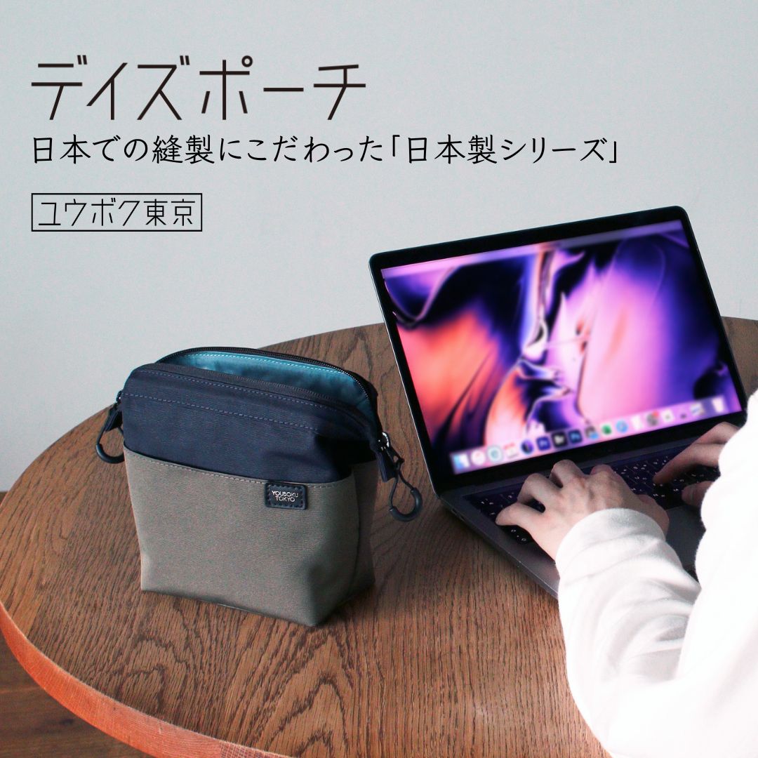 「ユウボク東京」から誕生した「デイズポーチ」は、仕切り付きポケットでガジェットを簡単に整理収納できる自立型ポーチです。