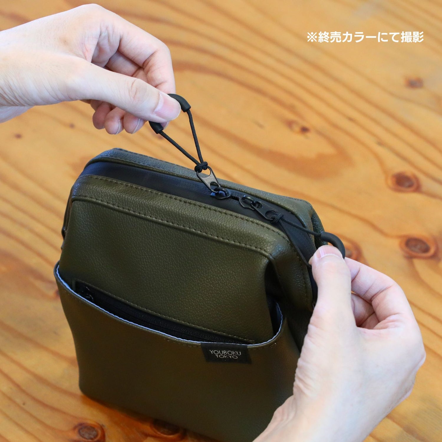 「デイズポーチ」は、上部のファスナーには、左右両方から開けられるダブルファスナーを採用。ループ状のファスナートップ(引き手)を付けているので、指に引っ掛けて楽に開けられます。
